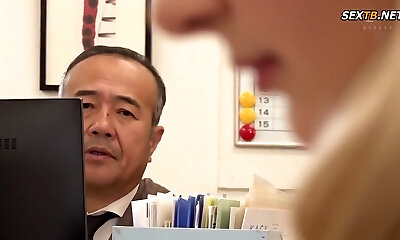 Dirty blonde slut finds a hot connection with her Japanese hubby's boss.