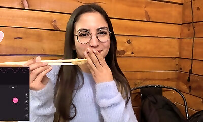 Cute busty asian girlfriend fngers in glasses