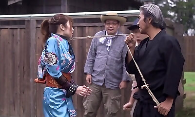 Japanese farmer girl, Maki Hojo had group sex outdoors, unce
